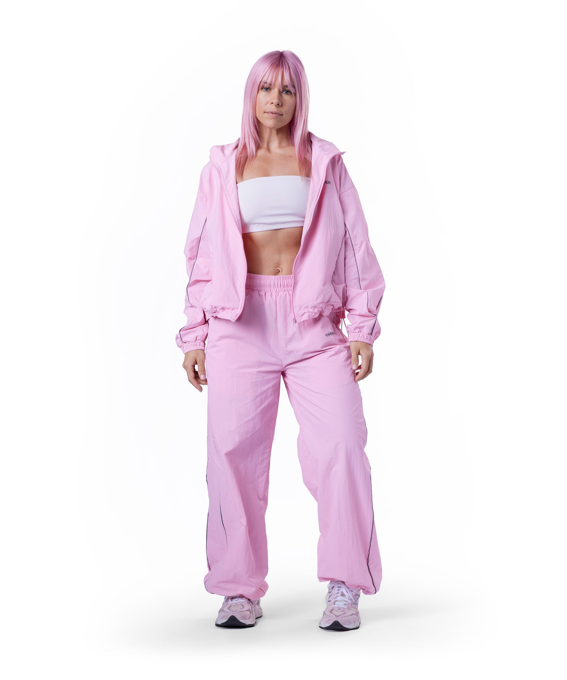 UPPPER’s Women’s Track Pants are made to move with you, whether you’re hitting your workout or just hanging out. Designed with 100% Nylon on the outside and a breathable  mesh lining, they’re perfect for staying cool and comfortable, no matter the activity. Reflective details add that extra touch of style (and visibility) so you can stand out during your late-night runs or morning jogs.